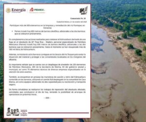 Recuperan más de 345 mil litros de crudo; Sheinbaum atribuye a deslave
